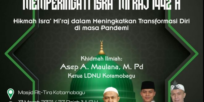Kegiatan tersebut, akan di selenggarakan bertempat di Masjid Attira Mogolaing. dengan mengusung tema.”Hikmah Isra Mi’raj Dalam Meningkatkan Transformasi Diri di masa Pandemi”.