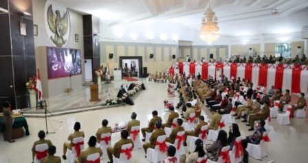 Kegiatan yang digelar di Ruang Mapalus Kantor Gubernur Sulut ini, berlangsung terbatas dengan protokol kesehatan secara ketat(*/adve)