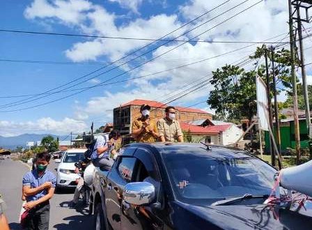 JurnalMongondow.com-Dalam rangka memutus mata rantai pandemi Covid-19, Bupati Kabupaten Bolaang Mongondow Timur (Boltim), Sam Sachrul Mamonto S.Sos, keliling menggunakan mobil bak terbuka dan pengeras suara, mengimbau kepada Masyarakat agar tetap mematuhi Protokol Kesehatan (Prokes).