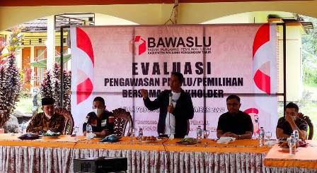 JM.Com Boltim- Bupati Sam Sachrul  menghadiri kegiatan Evaluasi Pengawasan Pemilu /Pemilihan Bersama Stackholder yang digelar oleh Bawaslu Boltim,  bertempat  di villa Tobongon, Selasa (21/9/2021).