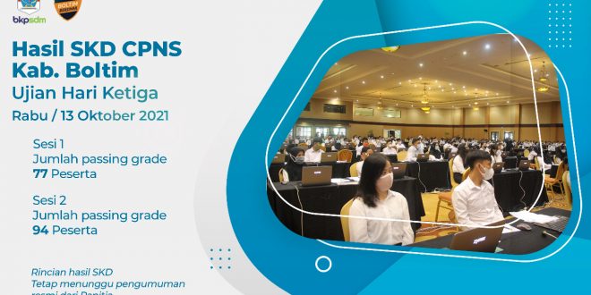 JM.com BoltiM-Memasuki hari ketiga pelaksanaan ujian SKD CPNS kabupaten bolaang mongondow timur, menghasilkan jumlah passsing grade dari sesi satu dan sesi dua.