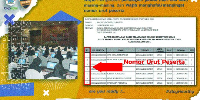 JM.Com,Boltim-Seleksi Kompetensi Dasar (SKD) Calon Pegawai Negeri Sipil (CPNS) Tahum 2021 di instansi Pemerintah Kabupaten Bolaang Mongondow Timur , akan digelar mulai Senin 11 Oktober pekan depan.