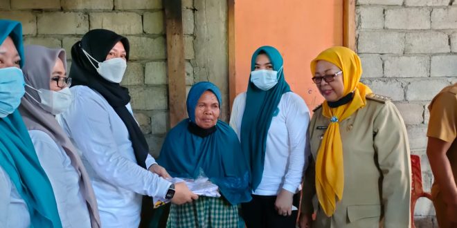 JM.com-BOLTIM-Ketua TP-PKK Kabupaten Bolaang Mongondow Timur (Boltim) Seska Ervina Budiman, menyalurkan bantuan kepada korban bencana kebakaran di Desa Bulawan Dua Kecamatan Kotabunan, Senin (6/12/2021).