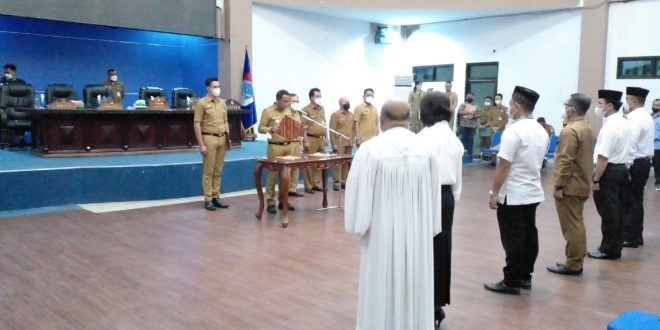 Pelantikan tersebut, digelar di lantai Tiga kantor Bupati Boltim, Senin ,(14 /3/ 2022) malam ini.