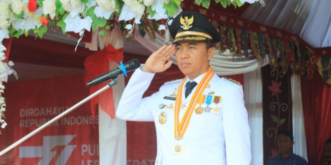 JM.com BOLTIM-Peringatan Hari Ulang Tahun Kemerdekaan Republik Indonesia ke-77 tahun 2022 di Kabupaten Bolaang Mongondow Timur (Boltim) berlangsung khidmat. Bupati Sam Sachrul Mamonto, S.Sos, M.Si menjadi Inspektur upacara bendera peringatan HUT RI ke 77, yang digelar pagi di lapangan Gogaluman Tutuyan mulai pukul 08.00 Wita, Rabu 17 Agustus 2022.