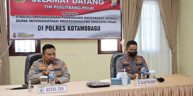 JM.com, Kotamobagu – Tim peneliti pusat penelitian dan pengembangan (Puslitbang) Polri sambangi Polres Kotamobagu pada Selasa (27/9/2022).