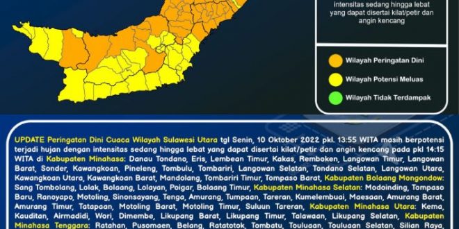 Ia juga mengingatkan dampak cuaca ekstrem yang berpotensi mengakibatkan sejumlah bencana.Bencana tersebut bisa berupa longsor hingga gelombang tinggi. Sebagian besar wilayah Boltim sendiri merupakan daerah pegunungan dan pesisir pantai.Pemerintah daerah melalui bupati dalam setiap kesempatan selalu mengimbau seluruh masyarakat Boltim yang tinggal di lereng gunung, di bantaran sungai, dan di pinggiran pantai.“Oleh karenanya bila kita tahu sudah mulai hujan dan angin serta gelombang tinggi, maka diharapkan menghindar serta mengungsi ke lokasi aman, supaya kita terhidar dari hal-hal yg kita tidak harapkan,” imbaunya.Sebelumnya, Badan Meteorologi Klimatologi dan Geofisika (BMKG) mengeluarkan peringatan dini gelombang tinggi di perairan Kotabunan Boltim.Peringatan dini gelombang tinggi tersebut berlaku Senin (10/10/2022) pukul 14.15-17.30 Wita.(*)
