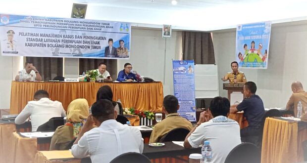JM.COM,BOLTIM-Bupati Bolaang Mongondow Timur Sam Sachrul Mamonto membuka secara resmi kegiatan pelatihan manajemen kasus dan peningkatan standar layanan Perempuan dan Anak (PA), Senin 14 November 2022.Selain membuka kegiatan, top eksekutif Boltim ini juga didaulat menjadi pemateri bagi para peserta pelatihan yang terdiri Aparat Penegak Hukum (APH), Kementerian Agama, Advokat, Psikolog, Camat serta OPD terkait lingkup Pemkab Boltim.Lewat sambutannya Sachrul menyampaikan, kekerasan terhadap perempuan dan anak adalah isu yang dihadapi semua negara termasuk Indonesia yang masih memiliki angka kasus yang cukup tinggi.“Khusus kabupaten Boltim, sampai tahun 2022 tercatat ada 78 kasus yang terdiri dari 16 kasus kekerasan pada perempuan, dan 62 kasus kekerasan terhadap anak. Hal ini tentunya menjadi keprihatinan kita bersama,” ungkapnya.Menurutnya, saat ini masih ada ‘fenomena gunung es’. Artinya kasus yang terjadi bisa lebih tinggi dari pada yang dilaporkan.“Hal ini tentunya menjadi pekerjaan rumah pemerintah karena menjadi masalah dalam pembangunan daerah,” ujarnya.Sachrul pun berharap lewat kegiatan yang digelar tersebut, akan mampu menjadi anak tangga bagi suksesnya penanganan kasus kekerasan terhadap perempuan dan anak yang sudah menjadi tanggungjawab bersama.“Hendaknya seluruh komponen terkait mampu memberikan pelayanan prima dan mensinergikan kegiatan penanganan kasus dengan sosialisasi pencegahan kekerasan di kabupaten Boltim,” harapnya.Lewat kesempatan ini, dirinya juga meminta semua lembaga terkait untuk dapat menyamakan persepsi dalam penyelesaian kasus sehingga dapat memberikan efek jera kepada para pelaku kekerasan perempuan dan anak.“Karena saya yakin ketika kita mampu bersinergi dalam upaya pencegahan dan penanganan kasus kekerasan PPA saat ini, maka nanti kedepannya pasti akan dapat menekan angka kasus di kabupaten Boltim,” pungkasnya.Kegiatan yang sedianya akan digelar selama dua hari ini, turut dihadiri Sekda Boltim Sonny Waroka, unsur pimpinan DPRD Boltim Medy Lensun dan Muhamad Jabir serta anggota DPRD Refly Lengkong.