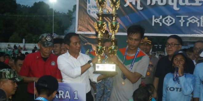 JM.com,boltim-Bupati Bolaang Mongondow Timur (Boltim) Sam Sachrul Mamonto, S.Sos, M.Si, menghadiri gelaran final sekaligus menyerahkan hadiah pemenang Turnamen Sepak Bola Al-Ihklas Cup 2022, di lapangan Bogani Kotabunan, Jumat (2/12/2022).
