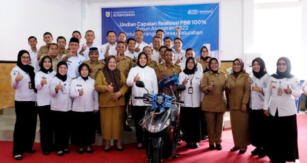 Pada kesempatan ini juga diberikan apresiasi dalam bentuk hadiah, termasuk 1 unit kendaraan roda dua kepada para Perangkat Desa dan Kelurahan yang Pajak Bumi dan Bangunan (PBB) tahun 2022 mencapai 100 persen.