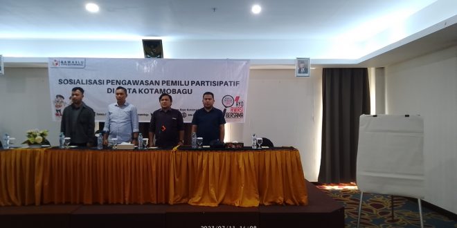 Hal ini di buktikan bertempat di hotel sutanraja Kotamobagu Bawaslu Kotamobagu menggelar sosialisasi pengawasan pemilu partisipatif. Selasa (11/7/2023)