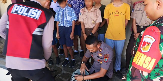 JM.COM,KOTAMOBAGU-Puluhan Siswa terjaring Razia gabungan Polres Kotamobagu bersama Kodim 1303 Bolmong serta instansi terkait saat berkeliaran diluar jam belajar sekolah Kamis (31/8/2023).