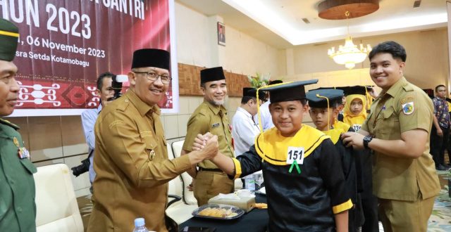 JM.COM, KOTAMOBAGU- Penjabat (Pj) Wali Kota Kotamobagu, Dr. Drs Hi. Asripan Nani, M.Si, menghadiri acara wisuda santri se-Kotamobagu. Senin 06 November 2023, di Ball Room Sutan Raja Hotel Kotamobagu. Sebanyak 1.115 santri dari berbagai TPQ dan TPA di Kotamobagu merayakan momen wisuda ini.