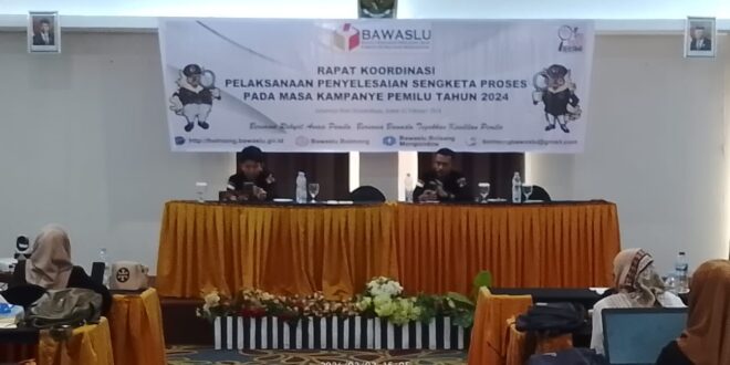 JM.net-Bolmong-Jelang pelaksanaan pemilihan umum (pemilu) pilpres anggota DPD RI Badan Pengawas Pemilu (Bawaslu) Kabuapaten Bolaang Mongondow melaksanakan Rapat koordinasi (Rakor)  terkait dengan pelaksanaan penyelesaian sengketa  proses pada masa kampanye pemulu tahun 2024 bertempat di Hotel Sutanraja Jumat (2/2/2024),