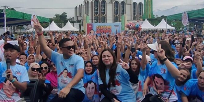 “ Program kami ini,tujuang untuk menyapa pendukung Prabowo-Gibran di Sulut. Sebap , kami melihat antusiasme masyarakat sangat besar untuk mendukung pak Prabowo dan Mas Gibran,” ungkap Simon Mantiri, yang didampingi oleh istri tercinta Pricilia Waworuntu.