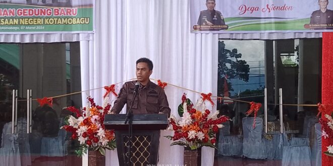 JM.Com, Kotamobagu– Gedung baru kejaksaan negeri kotamobagu  hari ini kamis (7/3/2023)  di resmikan  kepala kejaksaan negeri Kotamobagu Elwim Agustian  Kahar,SH,MH  dalam sambutanya nya mengatakan rasa sukur yang mendalam atas di bangun Dan diresmikan. Gedung kejaksaan baru ini, dimana ini menjadi lompatan baru bagi fasilitas kejaksaan negeri Kotamobagu.”  Ini satu kesukuran bagi kami dengan di bangunya fasilitas gedung baru kejaksaan kotamobagu ini, ” ujar Elwin.