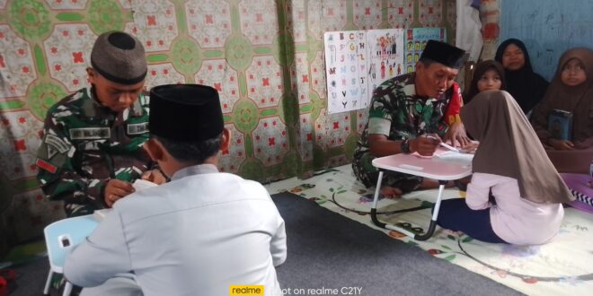 Seperti yang dilakukan hari ini oleh anggota Satgas TMMD Prajurit TNI Pratu Ariadi mengajari anak-anak usia dini untuk bagaimana mana membaca Al Qur’an dengan benar dan tepat.” Program TMMD sekarang ini tidak hanya fokus pada pembangunan fisik saja, namun bimbingan rohani dan mental bagi masyarakat terutama anak anak di usia dini saat seperti ini. ” Ujar Pratu Ariadi Walangadi.
