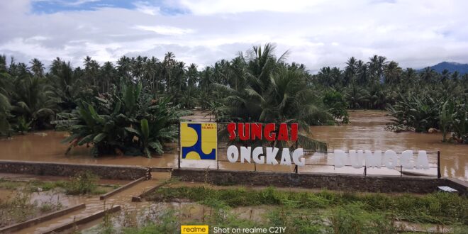 JM.Net.Bolmong– Hujan Deras yang melanda wilayah Bolaang Mongondow. Sejak beberapa hari lalu membuat sebagian wilayah daratan Dumoga tergenang air hingga merembet ke rumah warga, bahkan hasil data yang berhasil di himpun  dari Badan Penanggulangan Bencana Daerah (BNPB)  Bolmong ada sekitar 145 dan satu jalur akses jalan terputus. Bahkan saat ini Ketinggian air di sungai ongkaw kamis (27/6/2024). Suda  berada di tingkat Waspada II. Hal ini membuat sebagian warga yang bermukim dekat bantaran sungai  Ongkaw, kwatir dengan kondisi tersebut