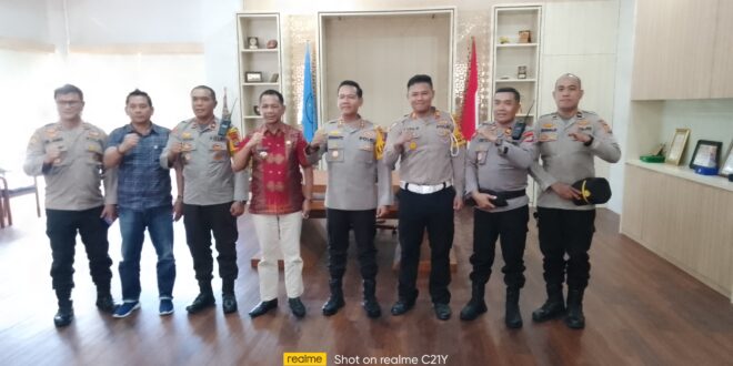 JM.Net Bolmong – Pj Bupati Bolaang Mongondow Jusnan C Mokoginta menerima kunjungan kerja Kapolres kota Kotamobagu AKBP Irwanto.S.I.K MH. kedatangan Kapolres kotamobagu AKBP Irwanto disambut hangat oleh Bupati Jusnan bersama jajaran Pemda Bolmong bertempat di kantor bupati Bolmong Kamis (19/7/1015).