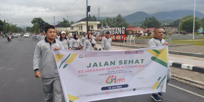 JM.Net,Kotamobagu– Jelang Hari Bhakti Adhyaksa ke-64 dan Hari Ulang Tahun Ikatan Dharma Karini ke-24, Kejaksaan Negeri (Kejari) Kotamobagu melaksankan kegiatan  jalan sehat Kamis (18 /7/ 2024).
