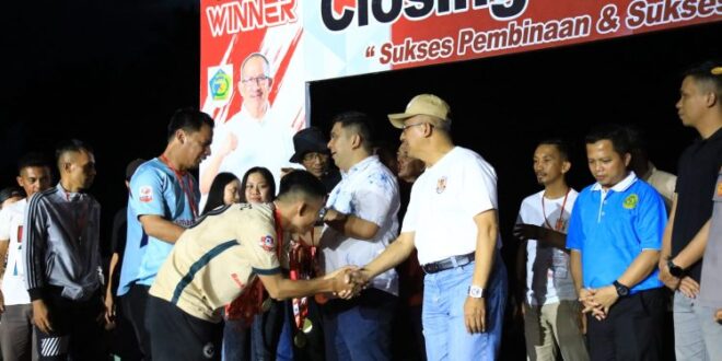 JM.Net-Ketua Dewan Perwakilan Rakyat Daerah (DPRD) Kotamobagu Meiddy Makalalag bersama Pj Walikota Asripan Nani menutup secara resmi turnamen sepakbola Wali Kota Cup Tahun 2024, Sabtu (13 /7/2024), Stadion Motobatu, Desa Poyowa Besar Dua.Dalam sambutannya, Pj Walikota Kotamobagu Asripan Nani mengucapkan syukur atas terlaksananya event yang sangat bergengsi di Kota Kotamobagu ini.“Atas nama Pribadi dan Pemerintah Kota Kotamobagu menyampaikan terima kasih yang sebesar – besarnya kepada semua tim, Kepada seluruh panitia pelaksana, Camat Kotamobagu Selatan, Sangadi, Tokoh Masyarakat, Tokoh Pemuda, Tokoh Perempuan serta semua pihak yang telah menyukseskan kegiatan ini,” ucap Asripan.