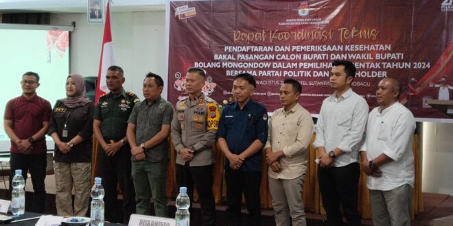 JM.Net, KPU Bolmong-Komisi pemilihan umum Kabupaten Bolaang Momngondow melaksanakan Rapat kerja (Rakor) pendaftaran dan pemeriksaan Kesehatan bakal pasangan calon Bupati dan Wakil Bupati Dalam pemilihan serentak tahun 2024 bersama partai politik dan Stakeholder.