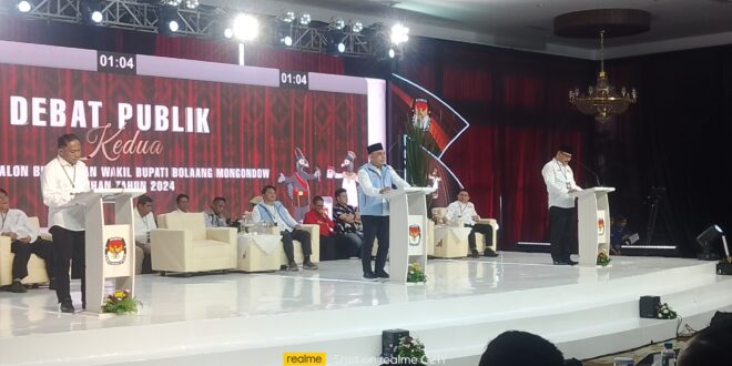 Debat tersebut di buka langsung oleh Ketua KPU Bolmong .dalam sambutannya mengatakan momen ini menjadi sarana yang efektif bagi para calon untuk menyampaikan gagasan serta rencana kerja yang akan mereka implementasikan jika terpilih. ”  Ini saran bagi para calon untuk menyampaikan visi  dan Misinya, untuk kepemimpinan limah tahun kedepan dimana ini juga menjadi tolak ukur untuk masyarakat menentukan pilihannya pada. Waktu pencoblosan nanti. ” Ujar Afif Zhuri.