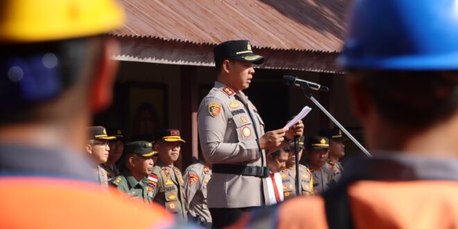 Kapolres Kotamobagu AKBP Irwanto, SIK, MH bertindak selaku pimpinan apel dengan peserta yang terdiri dari personil Polres Kotamobagu,unsur TNI dari Kodim 1303 Bolmong, Dishub, Satpol PP, Jasa Raharja, PLN, GP Ansor, pemuda GMIBM serta Pramuka.