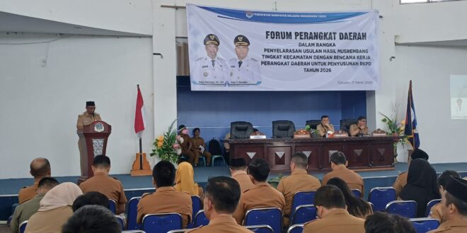 JM.Net,Boltim– Bupati dan Wakil Bupati Kabupaten Bolaang Mongondow Timur (Boltim), Oskar Manoppo dan Argo V Sumaiku, resmi membuka kegiatan Forum Perangkat Daerah dalam rangka penyelarasan usulan hasil Musrenbang kecamatan dengan rencana kerja perangkat daerah untuk penyusunan RKPD tahun 2026, yang berlangsung di lantai tiga Kantor Bupati, Selasa (11/3/2025).