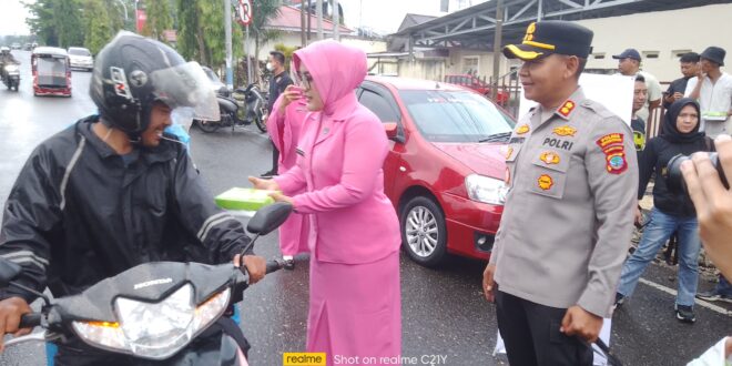 Jurnal Mongondow.Net– Ketua dan pengurus Bayangkari Polres kota Kotamobagu sore tadi jumat (7/3/2024) melaksanakan bakti sosial dengan berbagi takjil untuk buka puasa bagi pengemudi pengemudi kendaraan roda,dua,tiga dan empat serta pejalan kaki yang melintas di depan Mapolres kotamobagu.