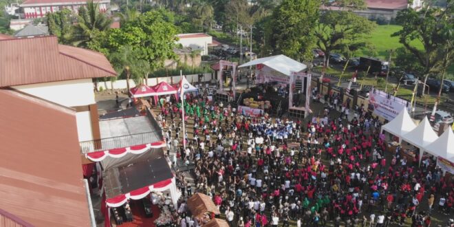 JM.net,KOTAMOBAGU-Suasana Kota Kotamobagu pada Sabtu (28/06/2025) pagi berubah menjadi lautan manusia. Ribuan masyarakat dari berbagai kalangan memadati rute jalan sehat yang digelar oleh Polres Kotamobagu dalam rangka menyambut Hari Bhayangkara ke-79, yang jatuh pada 1 Juli 2025. Kegiatan ini bukan sekadar olahraga bersama, tetapi menjadi momen kebersamaan yang menyatukan berbagai elemen masyarakat di bawah semangat “Polri untuk Masyarakat”.