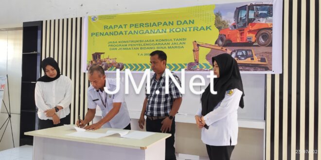 JM Net.Kotamobagu– Dinas Pekerjaan Umum dan Penataan Ruang (PUPR) kota Kotamobagu siang tadi melaksanakan penandatangan kontak dan Surat perjanjian kerja(SPK) sekaligus empat paket proyek bertempat di ruang rapat Dinas PUPR kota Kotamobagu Rabu, (23/7/2025).