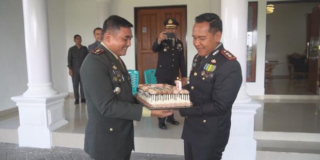 Kejutan kue ulang tahun juga dilakukan oleh Koramil kepada Polsek Jajaran Polres Kotamobagu.