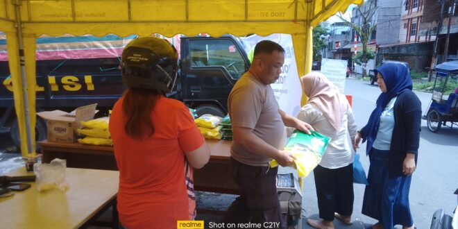 Jurnal mongondow.Net-Gerakan Pangan Murah (GPM) Polres Kotamobagu terus di banjiri masyarakat. untuk hari ini Geray GPM polres Kotamobagu yang berada di jalan ibolian seputaran Pasar 23 meret. Untuk hari ini GPM polres Kotamobagu menyediakan kurang lebih dua ton beras SPHP bagi masyarakat dengan harga relatif murah per kantong isi 5 Kg di jual dengan harga Rp 57.000.