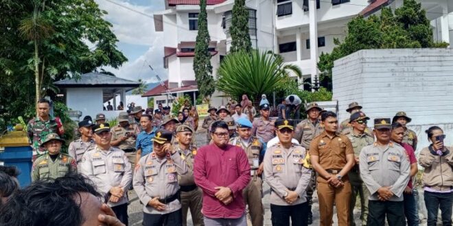 Jurnal Mongondow.Net-Dua aksi penyampaian aspirasi berlangsung di Kota Kotamobagu pada Selasa (25/11/2025). Aksi pertama diterima langsung oleh Shandry Anugerah Hasanuddin di depan Kantor Wali Kota Kotamobagu, sementara aksi kedua diterima oleh DPRD Kota Kotamobagu.Di area kantor Pemerintah Kota Kotamobagu, Shandry Anugerah Hasanuddin turun langsung menyambut massa aksi yang datang untuk menyampaikan aspirasi mereka. Jajaran Polres Kotamobagu, TNI, serta Satpol PP terlihat melakukan pengamanan dengan ketat namun tetap humanis untuk menjaga kondisi tetap aman dan kondusif. “Setiap aspirasi masyarakat akan kami terima dan proses sesuai mekanisme yang berlaku. Kami apresiasi karena aksi berlangsung tertib,” ujar Shandry di hadapan peserta aksi.Sementara itu, di lokasi berbeda, DPRD Kota Kotamobagu turut menerima aksi demonstrasi bertajuk Peduli dr. Sitti Korompot. Puluhan massa yang terdiri dari tenaga kesehatan serta karyawan RSIA Kasih Fatimah Kotamobagu menggelar demonstrasi di depan kantor DPRD.Dalam aksi tersebut, para demonstran menyampaikan dukungan moral dan aspirasi terkait persoalan yang melibatkan dr. Sitti Korompot. Mereka meminta DPRD Kotamobagu untuk menindaklanjuti isu yang mereka angkat dan memberikan perhatian atas kondisi yang sedang terjadi.Aksi yang melibatkan dua titik tersebut berjalan damai dan tertib. Setelah penyampaian tuntutan dan dialog singkat, massa aksi perlahan membubarkan diri dengan pengawalan aparat keamanan. (*)