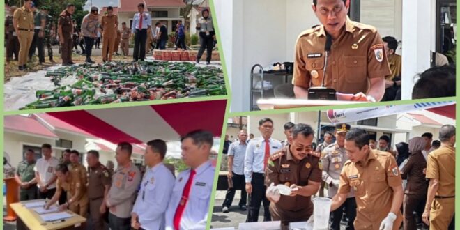 JurnalMongondow.Net-Wali Kota Kotamobagu, Dokter Wenny Gaib, Sp.M, dan Wakil Wali Kota Kotamobagu,Rendy Virgiawan Mangkat, turut menghadiri kegiatan pemusnahan barang bukti (Babuk) yang digelar Kejaksaan Negeri (Kejari) Kotamobagu, pada Senin, 15 Desember 2025, bertempat di halaman Gudang Barang Bukti Kejaksaan Negeri Kotamobagu.Adapun hasil Babuk yang dimusnahkan oleh Kejari dari hasil tindak pidana yang telah berkekuatan hukum tetap (inkrah) berupa 15.000 botol minuman beralkohol (Minol) dari berbagai jenis, narkotika jenis sabu-sabu, serta obat-obatan terlarang.Kegiatan tersebut juga turut dihadiri unsur Forum Koordinasi Pimpinan Daerah (Forkopimda) Kota Kotamobagu, Wakil Wali Kota Kotamobagu Rendy Virgiawan Mangkat, S.H., M.H., Ketua Pengadilan Negeri Kotamobagu, Kapolres Kotamobagu AKBP Irwanto, S.I.K., serta Dandim 1303/Bolaang Mongondow dan pimpinan instansi vertikal, dan pejabat terkait lainnya.Kegiatan diawali dengan laporan Jaksa Eksekusi, yang disampaikan oleh Bunga Batalipu, S.H., M.H., selaku PLT Kepala Seksi Pengelolaan Barang Bukti Kejaksaan Negeri Kotamobagu. Ia menyampaikan bahwa barang bukti yang dimusnahkan berasal dari berbagai perkara tindak pidana, termasuk tindak pidana ringan (tipiring) terkait peredaran minuman beralkohol tanpa izin pada sejumlah toko dan kios klontong, di antaranya Toko Tita dan Toko Bukit Karya. Seluruh barang bukti tersebut telah diputuskan dirampas untuk dimusnahkan berdasarkan putusan pengadilan yang telah inkrah.Selain minuman beralkohol, turut dimusnahkan narkotika jenis sabu-sabu, obat-obatan terlarang jenis Trihexyphenidyl (3H3/Penedil), serta barang bukti pendukung lainnya dari berbagai perkara.Pemusnahan barang bukti tersebut dipimpin langsung Kepala Kejaksaan Negeri Kotamobagu, Saptono, S.H., .Ia menegaskan bahwa pemusnahan barang bukti merupakan tahapan akhir dari proses penegakan hukum dan bentuk pertanggungjawaban institusi kejaksaan kepada masyarakat.“Pemusnahan ini bukan sekadar kegiatan seremonial, melainkan pelaksanaan putusan pengadilan yang telah berkekuatan hukum tetap. Ini merupakan komitmen Kejaksaan Negeri Kotamobagu dalam menegakkan hukum secara tegas, transparan, dan akuntabel,” tegas Kajari.Sementara itu, Wali Kota Kotamobagu, Dokter Wenny Gaib, Sp.M dalam sambutannya menyampaikan apresiasi kepada Kejaksaan Negeri Kotamobagu dan seluruh aparat penegak hukum atas konsistensi dalam menindak peredaran minuman beralkohol ilegal, narkotika, serta obat-obatan terlarang. Ia menegaskan bahwa peredaran minuman beralkohol tanpa izin tidak hanya melanggar hukum, tetapi juga berdampak serius terhadap ketertiban umum, kesehatan masyarakat, serta masa depan generasi muda.“Pemerintah Daerah Kota Kotamobagu mendukung penuh setiap langkah penegakan hukum yang dilakukan aparat, khususnya yang berkaitan dengan pengendalian peredaran minuman beralkohol ilegal sebagaimana diatur dalam Peraturan Daerah Kota Kotamobagu Nomor 2 Tahun 2010,” ujar Wali Kota.Pada kesempatan yang sama, Kepala Satuan Polisi Pamong Praja Kota Kotamobagu menyampaikan bahwa barang bukti minuman beralkohol tersebut merupakan hasil operasi penertiban terpadu yang dilakukan secara berkelanjutan.“Ini minuman keras Torang sita dari toko-toko Tita, Berkat abadi deng kios klontong yang jual tanpa izin. Berdasarkan Perda di tindak, selanjutnya diproses hukum sampe putusan pengadilan, baru hari ini sampai pada tahap Pemusnahan yang dilakukan oleh kajari untuk musnahkan.Pantauan media ini, kegiatan pemusnahan berlangsung aman dan tertib, yang disaksikan langsung oleh unsur Forkopimda dan para tamu undangan. Kejaksaan Negeri Kotamobagu bersama Pemerintah Daerah berkomitmen untuk terus memperkuat sinergi dalam rangka mewujudkan Kota Kotamobagu yang aman, tertib, dan bermartabat.(*)