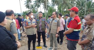 JM.Net Bolmong -Bupati Bolaang Mongondow Jusnan C Mokoginta dan Tenaga Ahli kepala BNPB pusat Brigjen Lumansya meninjau langsung lokasi terdapat banjir bendungan Konsiggolan Desa Doloduo kecamatan Dumoga Barat,Sabtu (29/6/2024). Di …