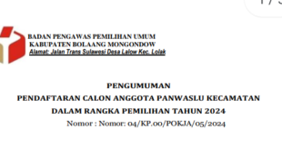 JM.Net,BAWASLU-Badan Pengawas Pemilihan Umum (Bawaslu) Kabupaten Bolmong membuka kesempatan bagi putra dan putri terbaik di Kabupaten Bolmong mendaftar sebagai Panitia Pengawas Pemilu (Panwaslu) Kecamatan untuk Pemilihan Umum (Pemilu) tahun 2024. …