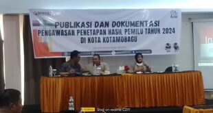 JM.Com Kotamobagu-Badan Pengawas Pemilu (Bawaslu) Kota Kotamobagu. Melakukan sosialisasi publikasi dan dokumentasi pengawasan penetapan hasil pemilu tahun 2024 di kota Kotamobagu bertempat di hotel Sutan Raja Senin (22/4/2024) Ketua Bawaslu …