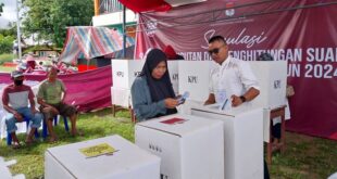 JurnalMongondow.Net-Komisi Pemilihan Umum (KPU) Kabupaten Bolaang Mongondow (Bolmong), menggelar simulasi tugas Kelompok Penyelenggara Pemungutan Suara (KPPS) di Tempat Pemungutan Suara (TPS), di Desa Mongokoinit, Selasa (30/01/2024). Simulasi dilaksanakan di Lapangan …