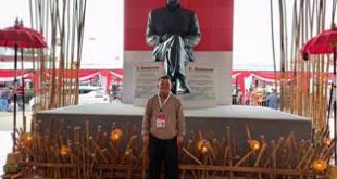 JUNALMONGONDOW-Wakil Ketua DPC PDIP Kotamobagu Nayodo Koerniawan SH membawa salah satu produk lokal yakni Gula Aren asal Desa Moyag, pada hajatan Rapat Kerja Nasional (Rakernas) PDIP di Jakarta, Kamis (9/1/2020). …