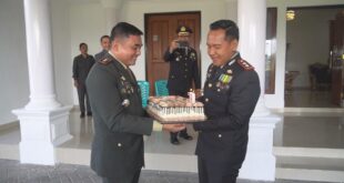 Sinergitas Tanpa Batas Dandim 1303 BM, Serahkan Kue Ultah Ke Kapolres Kotamobagu Di Hari Ulang Tahun Bayangkara Ke 79