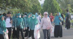JM.Net,Boltim-Ketua TP-PKK Kabupaten Bolaang Mongondow Timur (Boltim) Ny. Rosita Manoppo-Pobela, S.E., M.Si bersama jajaran pengurus TP-PKK dan Pemerintah Daerah Kab. Boltim menggelar kegiatan jalan sehat dan bersih-bersih lingkungan dalam rangka …