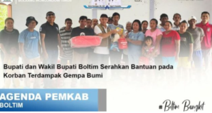 JurnalMongondow.Net-Boltim- Bupati dan Wakil Bupati Kabupaten Bolaang Mongondow Timur (Boltim) Oskar Manoppo S.E,.M.M dan Argo V Sumaiku Menyerahkan Bantuan kebutuhan pokok Kepada korban terdampak bencana gempa bumi di desa jiko …