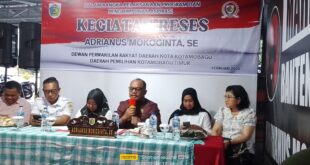 JM.Net, Kotamobagu-Ketua DPRD Kota Kotamobagu Adrianus Mokoginta, SE, mengelar Reses dalam rangka menyerap aspirasi masyarakat, Rabu (26/02/2025). Di reses tersebut, dihadiri oleh Kepala Dinas Sosial Noval Manoppo, kepala dinas Disnakertra …